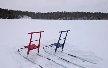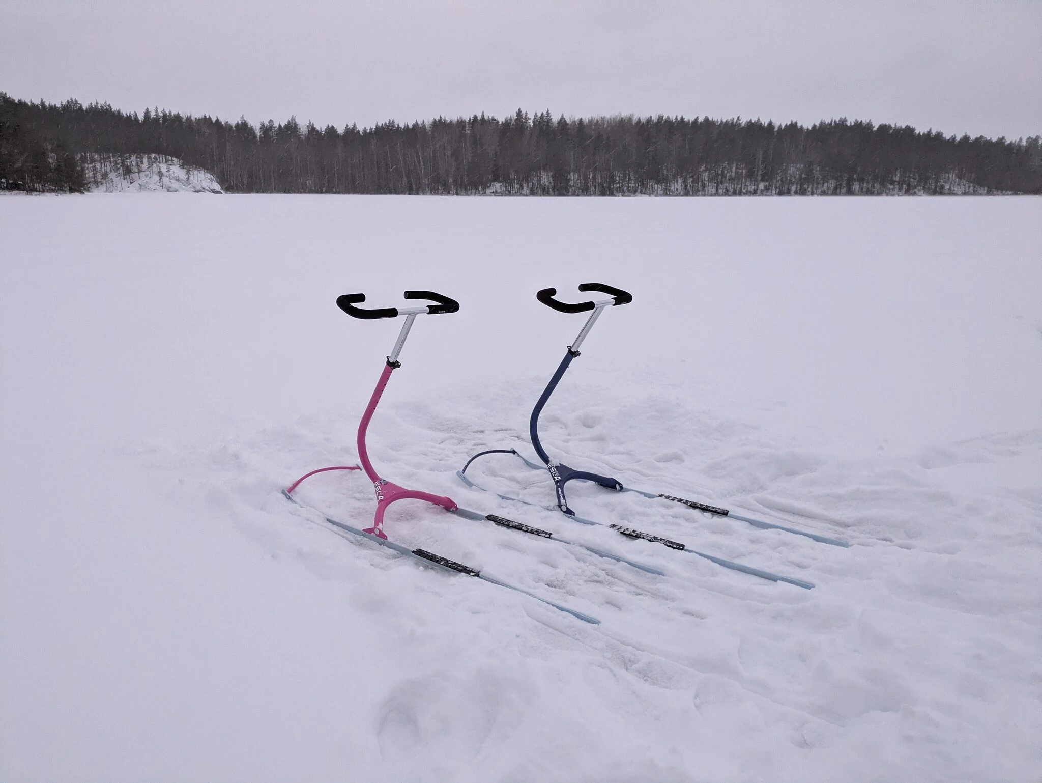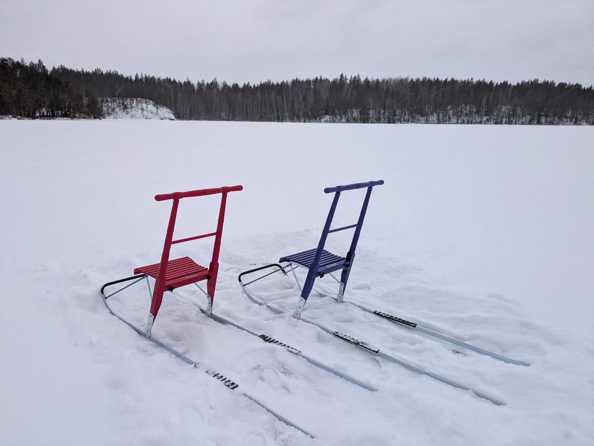 The winter landscape offers many opportunities for outdoor activities. When the ice on the lake is thick enough, you can explore nearby islands simply by walking to them! If there is a lot of snow, you can use snowshoes or sliding snowshoes. Sliding snowshoes are wide skis that attach to regular shoes, this is an easy way to ski in the forest or on frozen lake without prepared tracks. While walking along gravel roads, you can admire the beautiful nature or take a snowshoe walk into the forest. Kick sleds are a fun way to explore the snowy roads or the frozen lake when there isn't too much snow. A great winter activity is also ice fishing, which does not require a permit.