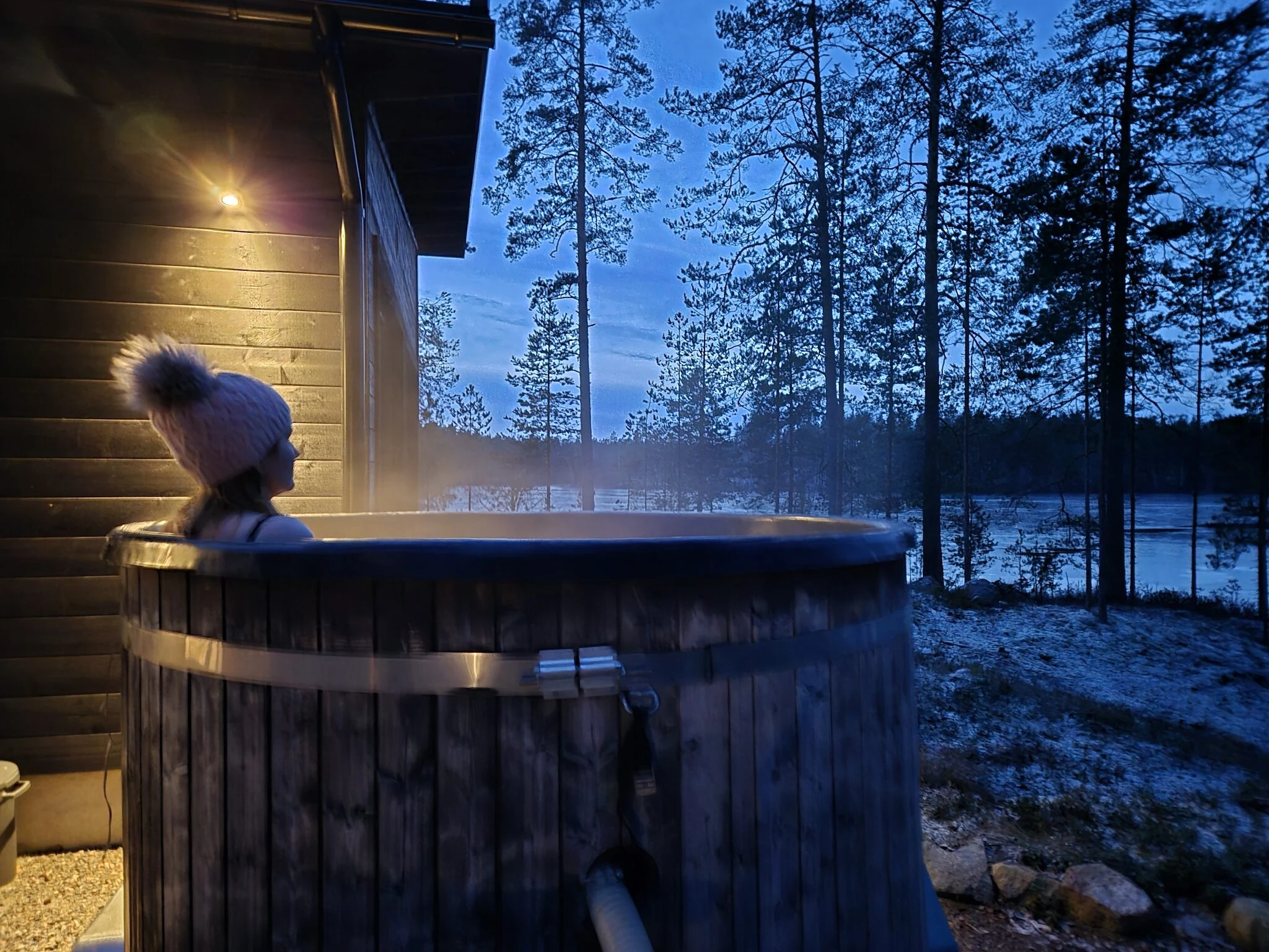Relax and enjoy the warmth of an outdoor hot tub heated with wood. Perfect for cozy evenings and unforgettable moments in nature in every season of the year. Enjoy the lake view or the starry sky.