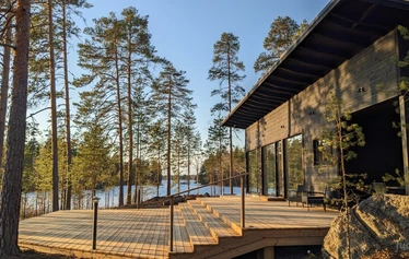 Mökki on 82 neliöinen ja siinä on lisäksi 20 neliöinen katettu terassi. Rannan suuntaan oleva 120m2 terassi jatkuu kulkusiltana omalle laiturille asti.Terassilta löytyy ruokailuryhmä, oleskeluryhmä ja aurinkotuolit sekä -varjo. Isolta terassilta löytyy helposti sekä aurinkoa että varjoa. Terassilla on myös kaasugrilli. Mökin vieressä on parkkitilaa ja autolla pääsee oven viereen. Mökkialue on yksitasoisuuden ja laajan terassialueen ansiosta helppokulkuinen.
